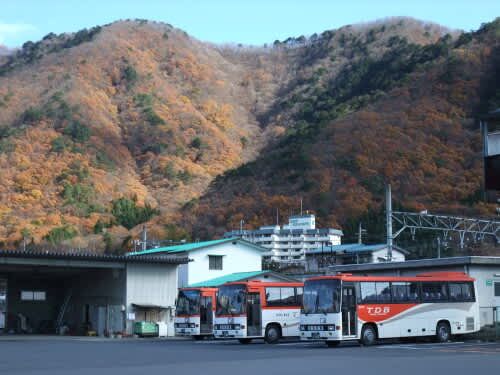天気の良い11月のある日、バイクでお出かけしてきました。 まず到着したのは東武線の鬼怒川温泉駅。紅葉の山と東武ダイヤルバス。 続いて日光。国道120号線を走行していると… 同行した方から「面白いものがあるよ~」とバイクを路肩に停めました。 道路…