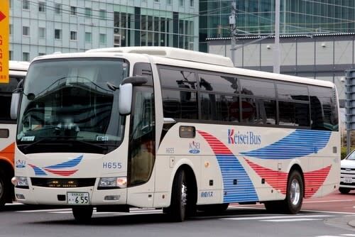 検査標章1月。京成バスの新車、三菱ふそうエアロエースMS06モデル、H655号車です。 京成バスにもMS06モデルが登場。京成トランジットバスとは違い「FUSO AERO」のエンブレムが入ります。 所属は、新習志野高速営業所で、五輪ナンバーの…
